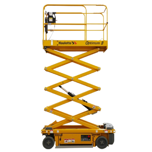 The Haulotte Optimum 8 electric scissor lift is an ultra-compact scissor lift that delivers exceptional performance and productivity. Thanks to its asynchronous AC motor, the Optimum 8 delivers precise and smooth proportional movements. Combined with its narrow 1.50 metre turning circle, operators can easily and safely manoeuvre through the most difficult workspaces.